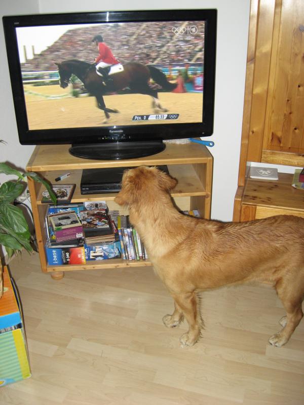 Der sportliche Hund von heute guckt Olympia! Mann, ist das spannend!