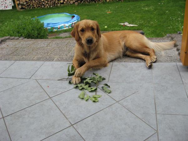Frauchen meinte, im Sommer muß man auf seine Bikinifigur achten.... deswegen gibts bei mir heute nur Grünfutter, Mahlzeit!
